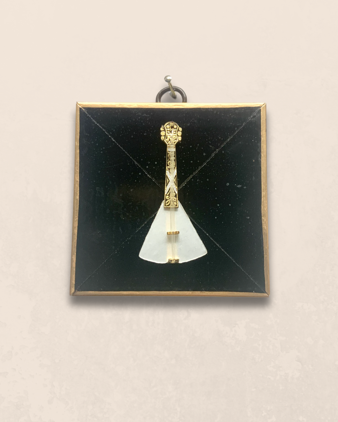 A wood-framed composition showcasing a musical instrument rendered with ornate embellishment—a celebration of artistry and acoustic heritage. The intricately detailed frame provides period-inspired character while the instrument subject introduces cultural resonance and visual rhythm. Decorative flourishes throughout enhance the composition's sense of refined craftsmanship and historical reverence. Display as wall art or shelf styling to introduce musical sophistication and artistic depth—an evocative accent for interiors that honor creative expression and the timeless beauty of instrumental tradition.
