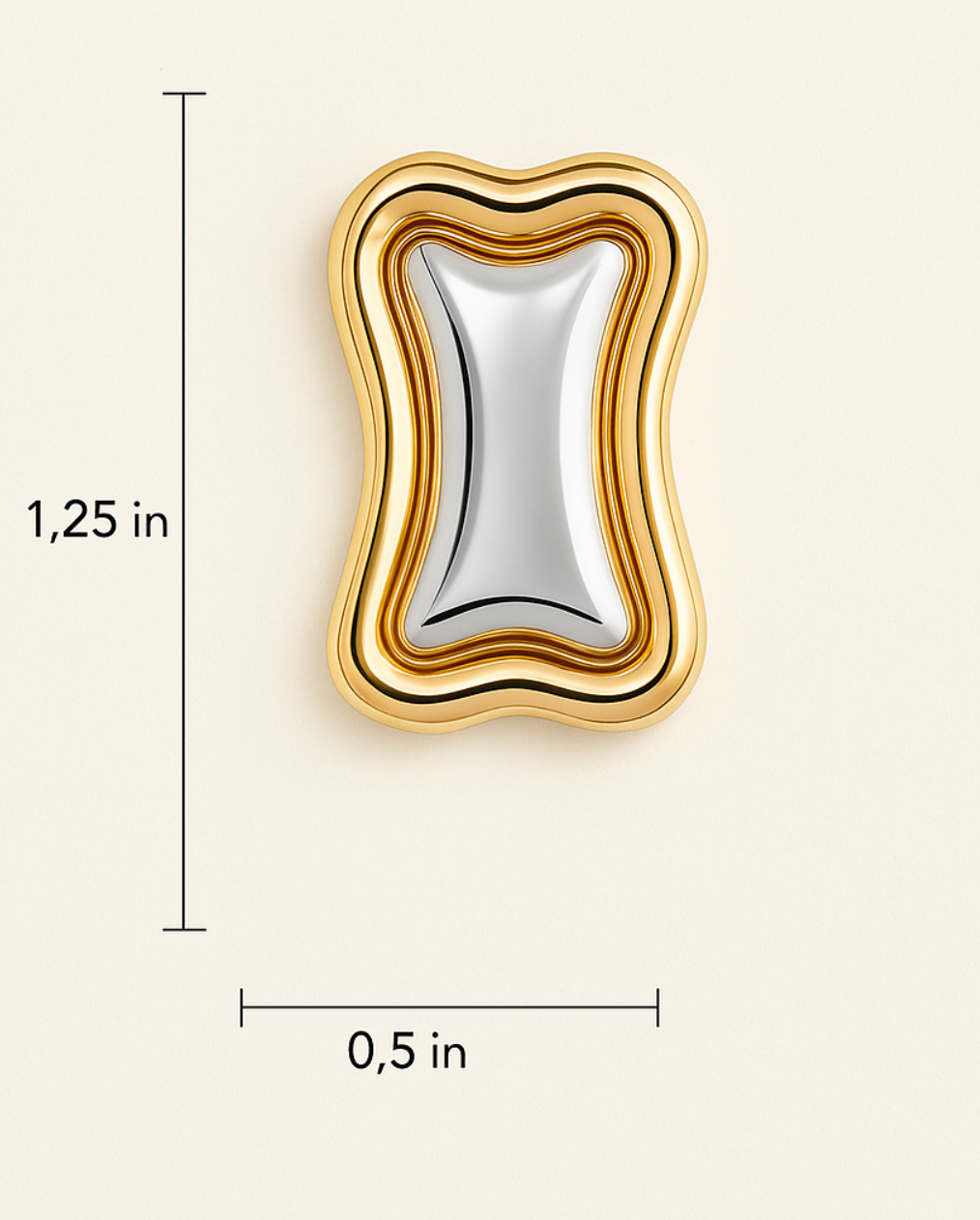 Meet your new everyday statement studs. These wavy sculptural earrings feature a reflective silver-toned center crafted from hypoallergenic surgical steel, framed in luxurious 14k gold plating for a stunning mixed-metal finish. Despite their bold, dimensional look, they’re surprisingly lightweight, making them comfortable enough for all-day wear.