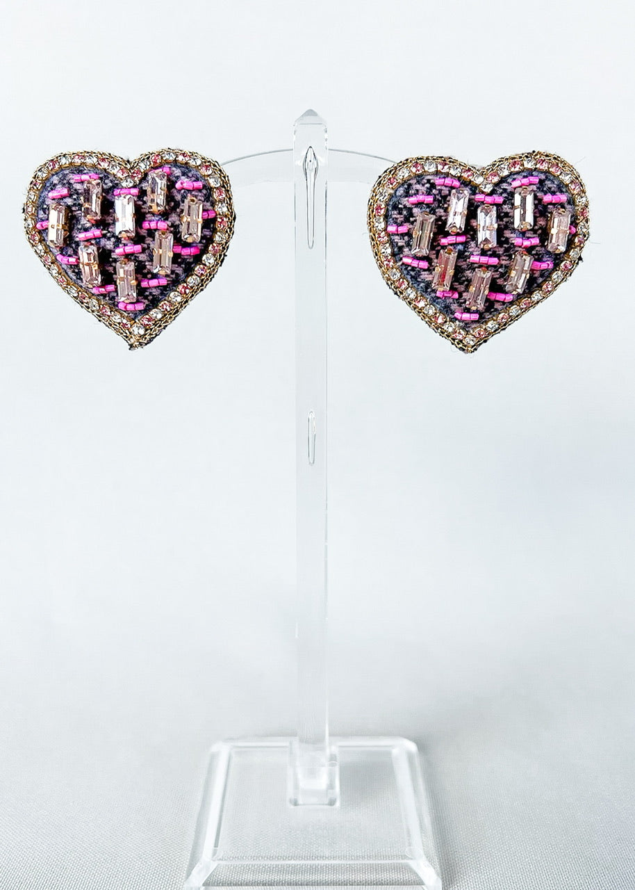 Get ready to fall in love with the oh-so-adorable Navy Tweed Heart Earrings! These handmade beauties feature top-notch gemstones and an irresistibly puffy design. A nod to our tweed obsession, these lightweight darlings are perfect for wearing all year long. And no need to worry about allergies - they're made with hypoallergenic 14k gold plated hardware.