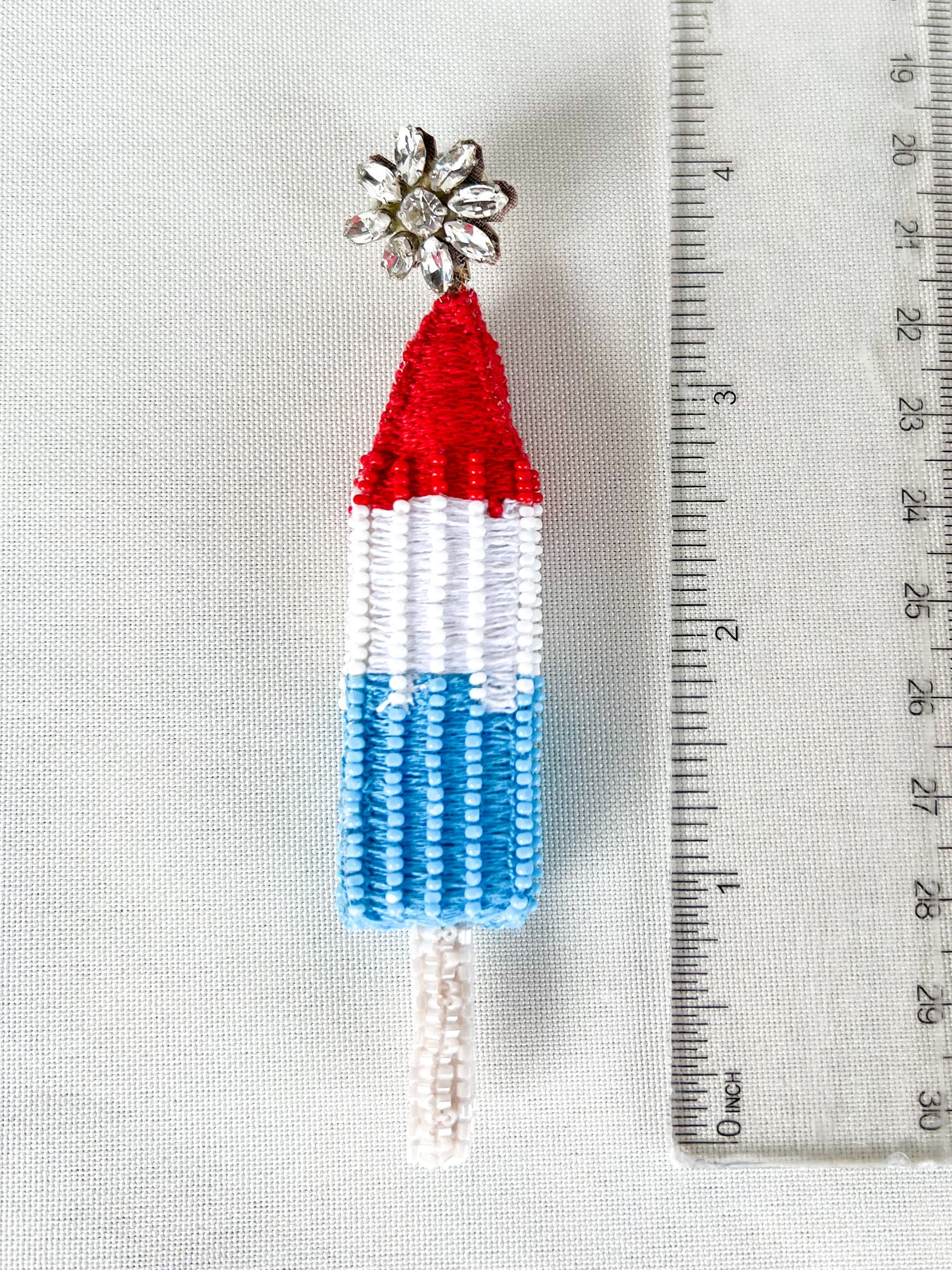 Get ready to party in luxury! The Patriotic Popsicle Earrings are sure to make you the star-spangled sensation of the summer. Show off your patriotism by catching some rays with these red, white, and blue beauties in your July 4th ensemble. The intricate detail of these earrings will have everyone asking you where you found them.