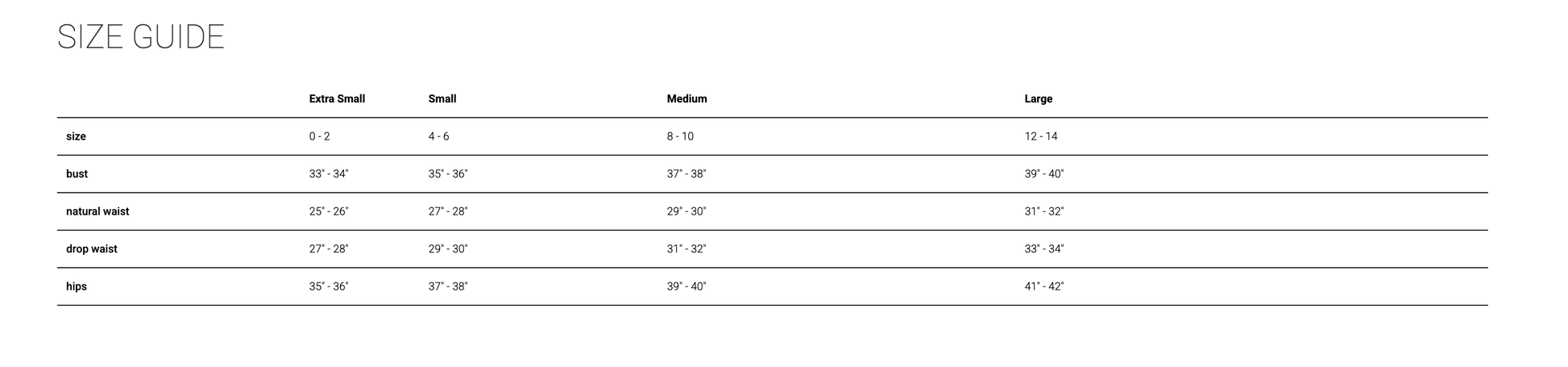 - Style Measurements for Size S