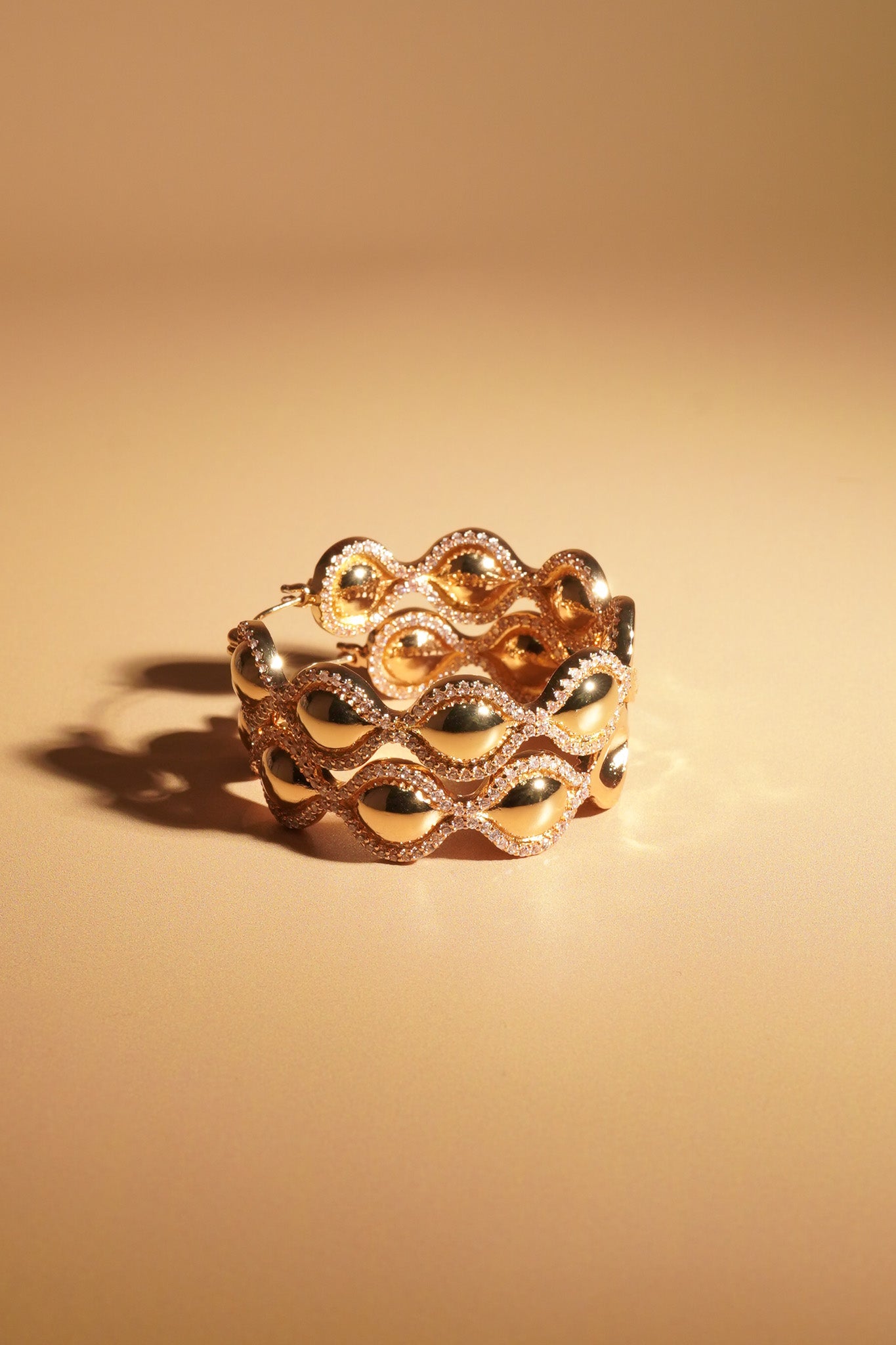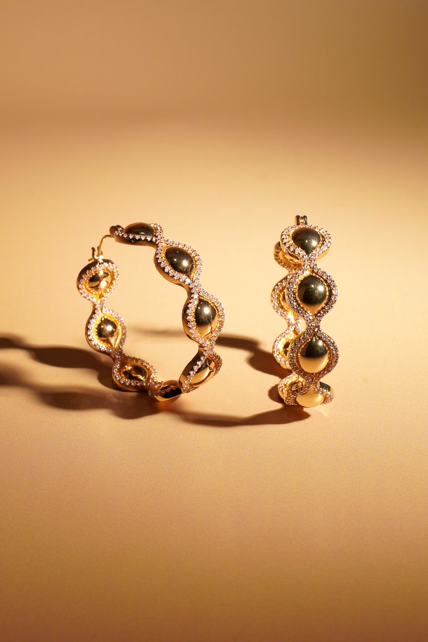 Experience some groovy vibes with the luxurious "Your Favorite Guest" hoops! These earrings boast a double-sided plating and sparkling CZ for a 3-dimensional dazzle that'll catch attention from all directions. Adding a playful touch to any ensemble, these 2.50" hoops are a perfectly medium weight.