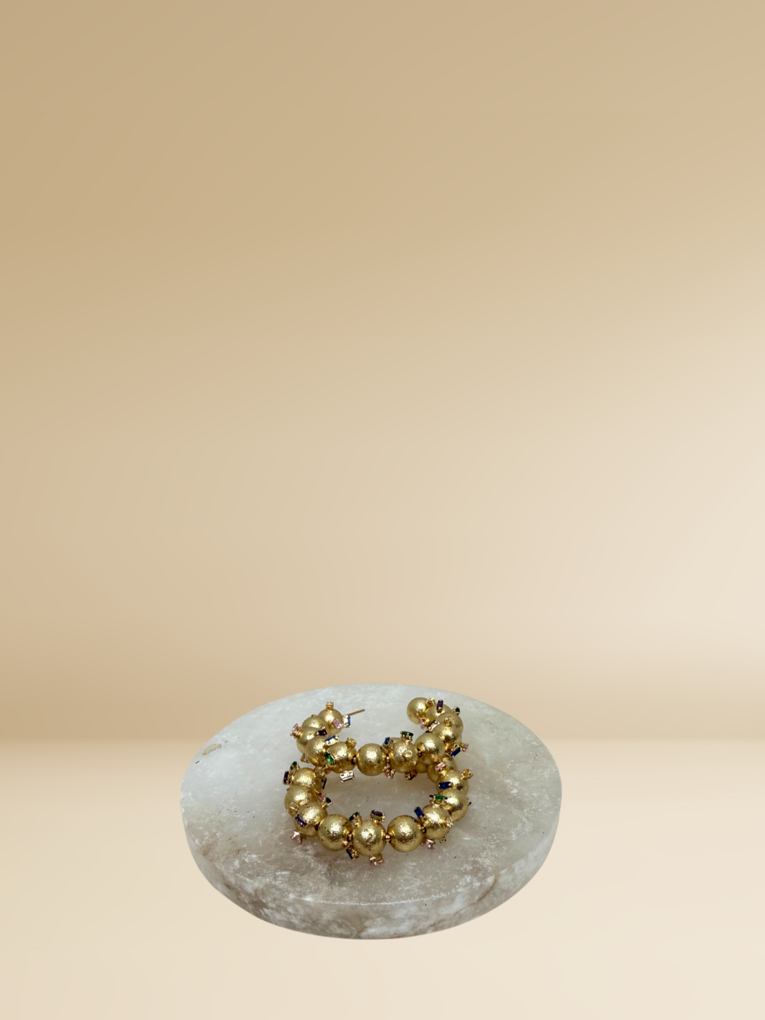 Introducing Jean Gem Gold Hoops, designed for the modern maximalist. These earrings embody a luxurious and sophisticated aesthetic, combining the timeless elegance of gold with the brilliance of exquisite gemstones.