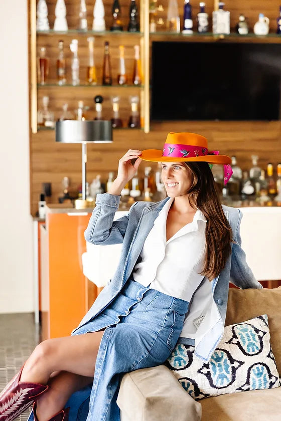 Introducing the Sweet Nectar Twilly, crafted from 100% silk twill for a luxurious and soft feel. Perfect as a scarf, headband, or hair accessory, its versatility adds an effortless touch of elegance to any outfit. Enhance the beauty of nature with this must-have addition to your silk accessories collection.