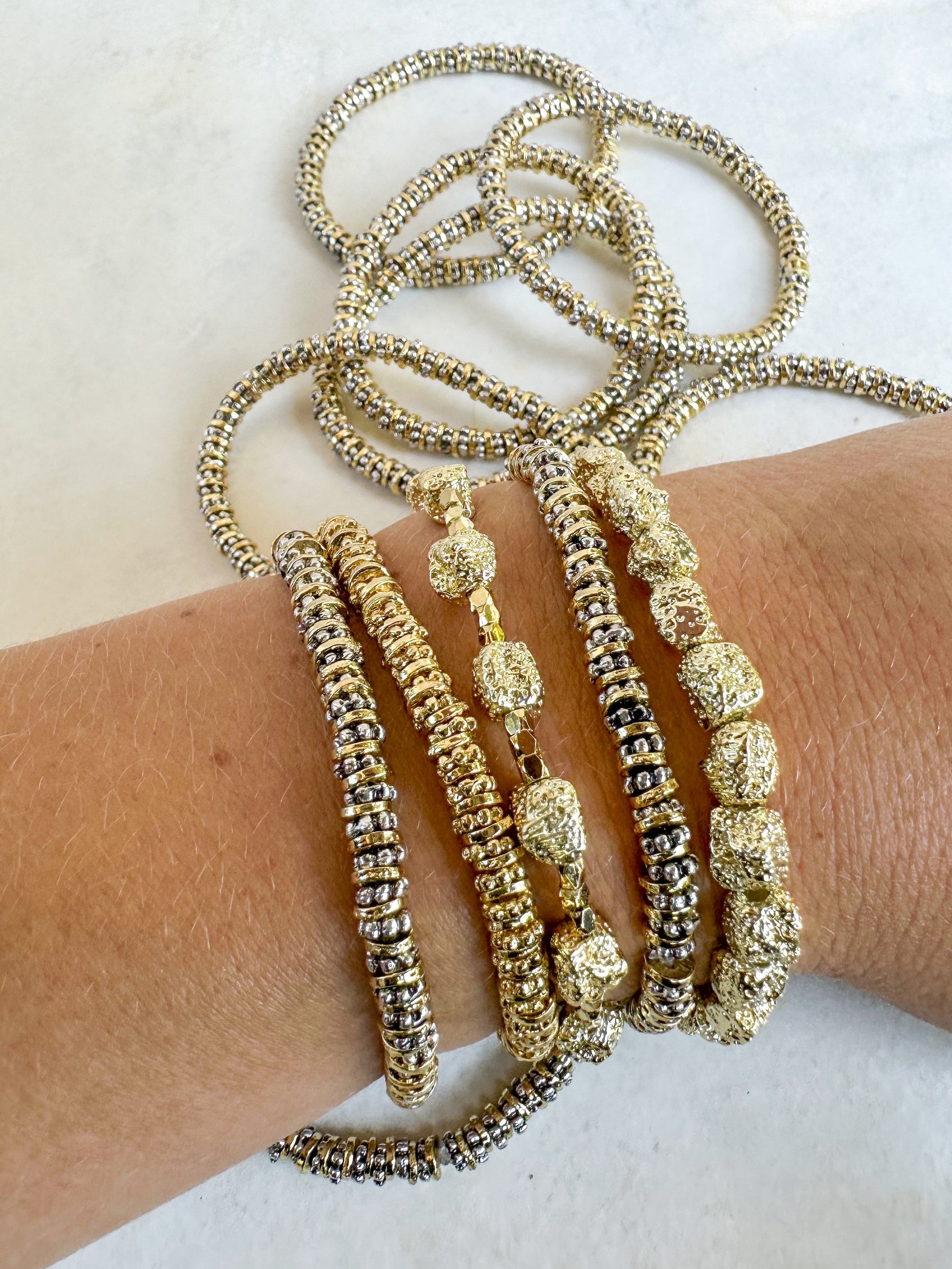 Elegant and eye-catching, this all-silver Caviar bracelet adds a luxurious touch to any look. Featuring elastic construction and two sizes, it can be easily stacked with gold and silver jewelry. Make a statement with this beautiful bracelet!