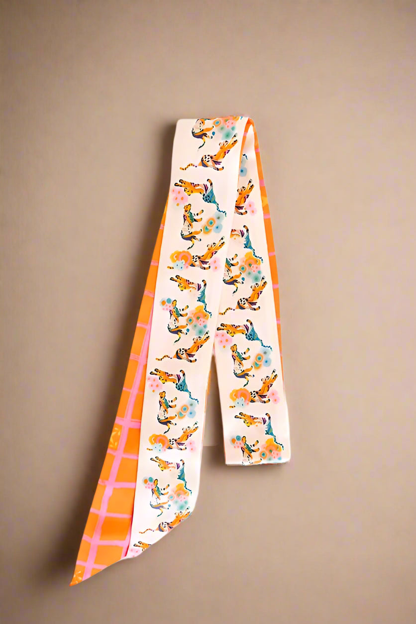 Elevate your style with the Dancing Leopards Twilly, crafted from 100% silk twill. Use it as a scarf or headband for a touch of sophistication, or wrap it around your handbag for a chic accessory. Add a dash of glamour and a pop of leopard print to any outfit. Experience luxury with the Dancing Leopards Twilly!