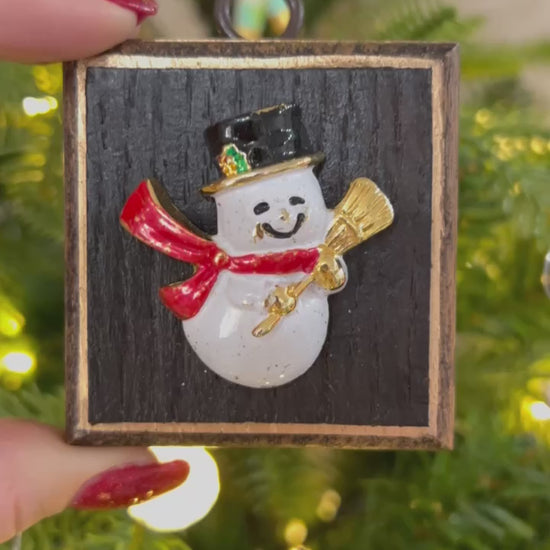 Let Frosty the Snowman Bee add a touch of holiday cheer to your décor! This adorable snowman is featured on a vintage barrel frame - a unique art piece sure to bring smiles to your home. Add some wintry spirit today!