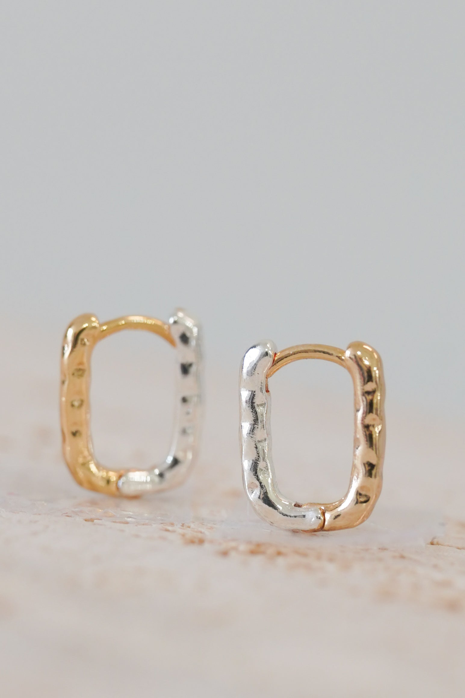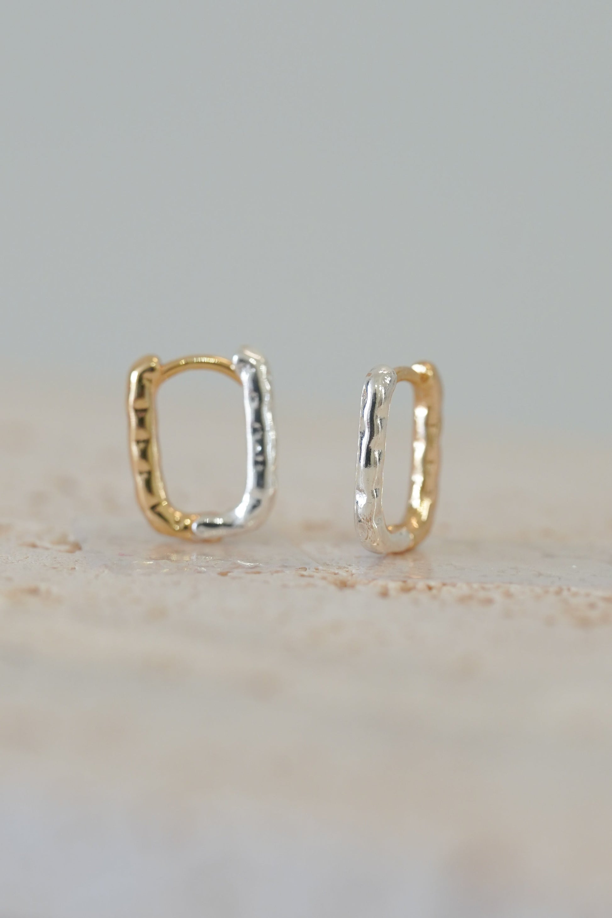 Experience ultimate comfort and style with our Gold & Silver Reversible Huggies! Made with gold plated brass and sterling silver, these Huggies are not only fashionable but also incredibly comfortable to wear. And the best part? They're reversible, giving you the freedom to choose which side to showcase. Elevate your look and make a statement with these stunning Huggies.