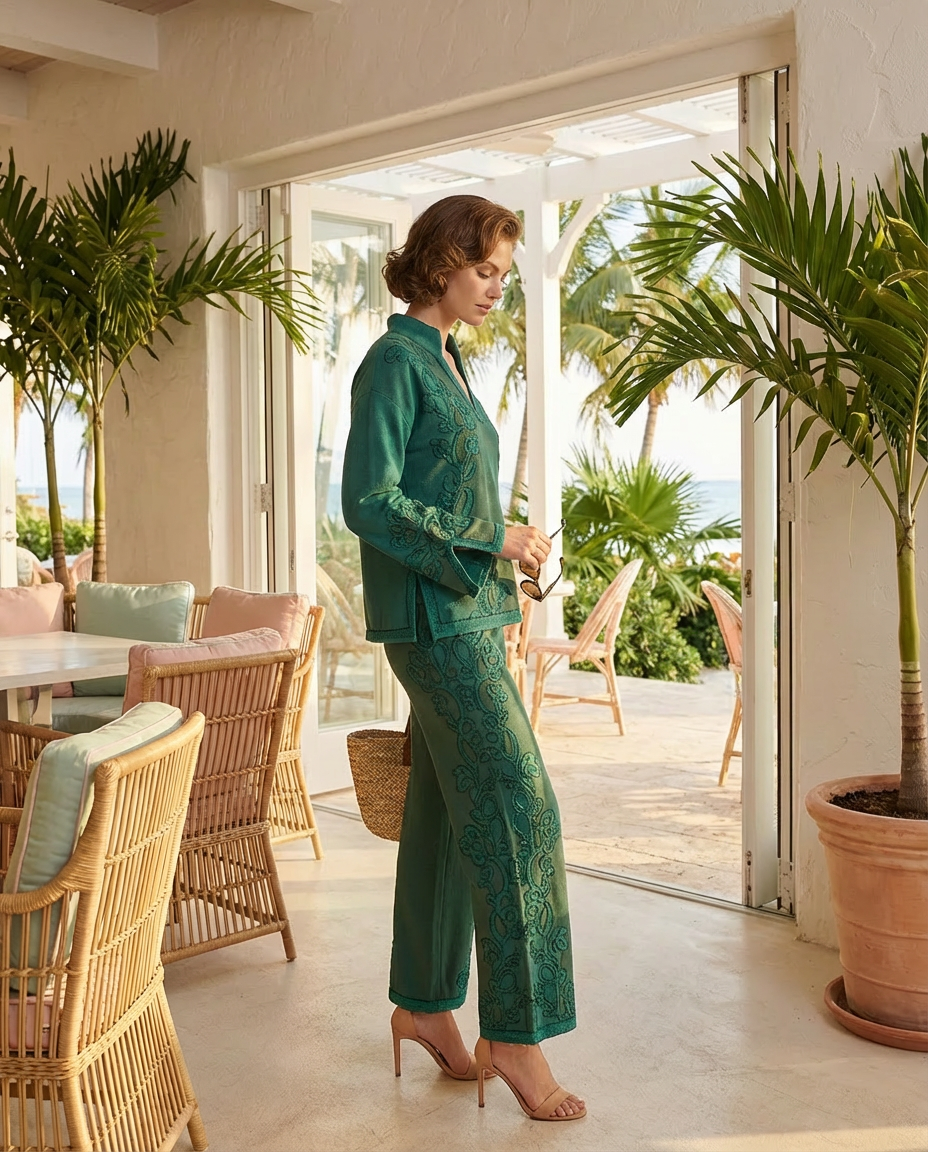 Meet the Reese Sparkle Knit Pant—where relaxed elegance meets refined comfort. This oversized jacquard knit in a luxurious cotton, metallic, and nylon blend features gentle sparkle throughout, creating understated sophistication without excess. The generous, casual fit invites layering and movement, while the coordinating design pairs seamlessly with the Reese Sparkle Knit Top for a complete editorial moment. Ethically crafted in India and built to endure—simply machine wash cold and lay flat to dry.