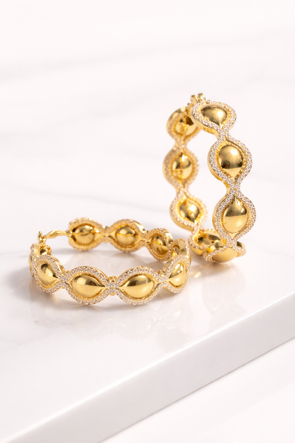 Experience some groovy vibes with the luxurious "Your Favorite Guest" hoops! These earrings boast a double-sided plating and sparkling CZ for a 3-dimensional dazzle that'll catch attention from all directions. Adding a playful touch to any ensemble, these 2.50" hoops are a perfectly medium weight.
